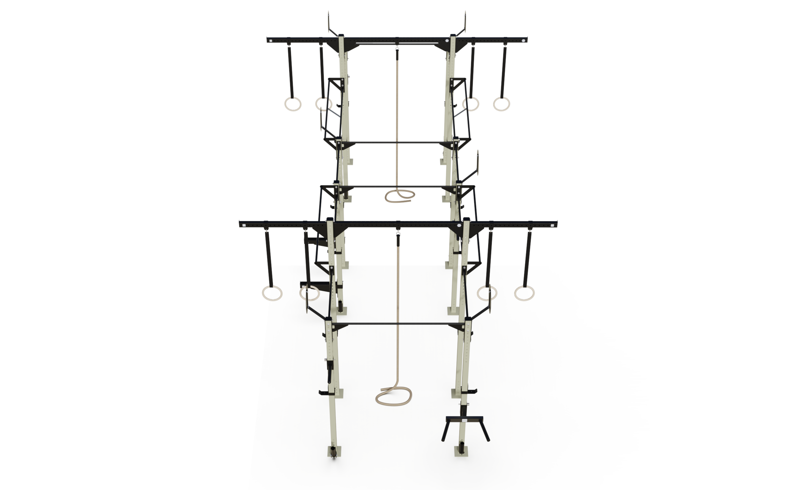 Avec plusieurs stations pour Dominé, anneaux et grimpes de corde, cette cage maximise l'utilisation de l'espace dans gymnases et centres de formation, facilitant une variété d'exercices qui optimisent les performances des athlètes.