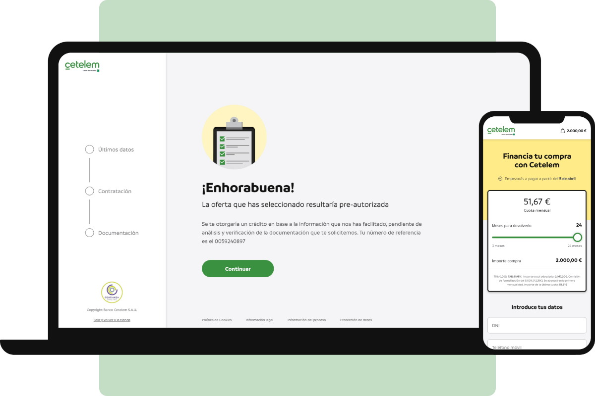 Con Cetelem, paga tus compras después de recibirlas o si lo prefieres poco a poco.