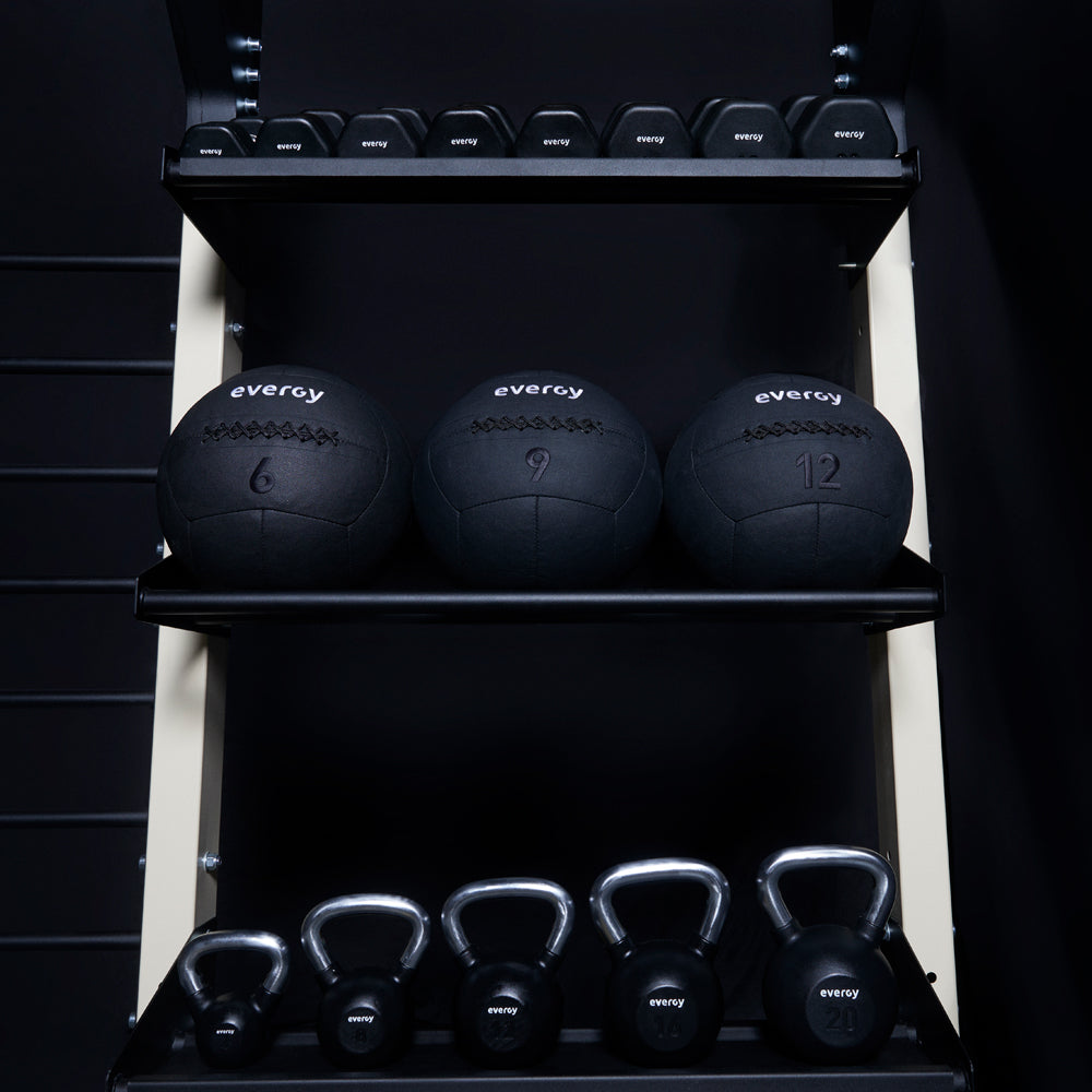 Organize seus halteres com eficiência com nossa Balda, facilitando o acesso rápido e maximizando o espaço em sua academia.
